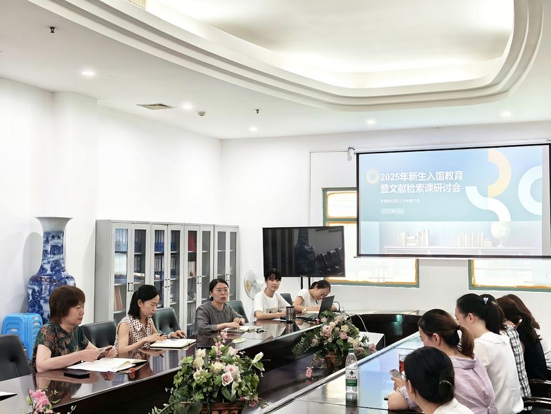 (通讯员 江语蒙)2025年9月5日上午,2025年度新生入馆教育动员会暨文献检索课程研讨会在南湖校区逸夫图书馆六楼会议室召开。图书馆馆长白学娟、党委书记刘筱彤、副馆长杨小玲及全体新生入馆教育培训教师参加了本次会议,会议由副馆长杨小玲主持。