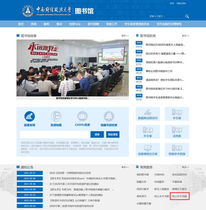 1. 打开图书馆主页,在右下方常用服务中找到“线上中文书展”,点击即可进入荐购平台“芸台购”。