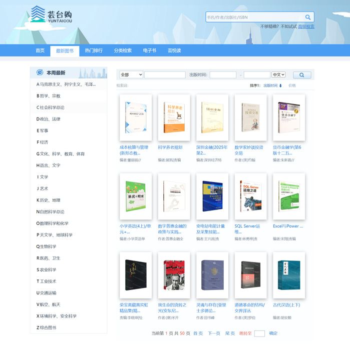 2. 登录后,点击网页上方“最新图书”按钮,浏览本周最新图书(本周最新图书根据时效性进行推送,暂不提供学科分类)。若用户想荐购热门图书,也可在页面上方点击“热门排行”进入热门书榜进行荐购。