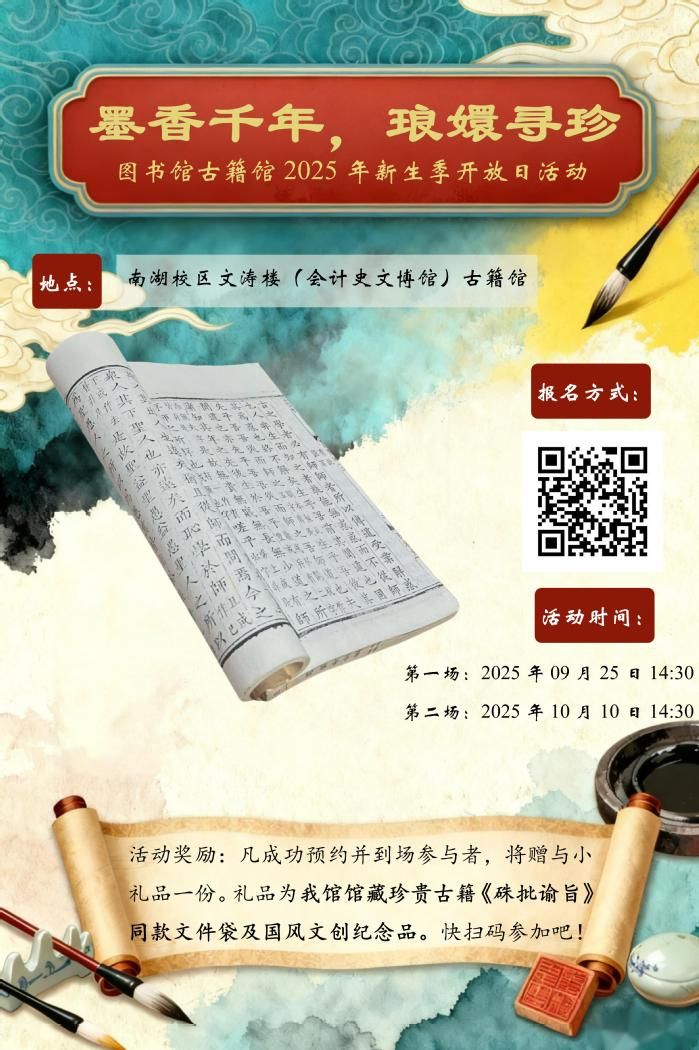 地点:南湖校区文涛楼(会计史文博馆)古籍馆