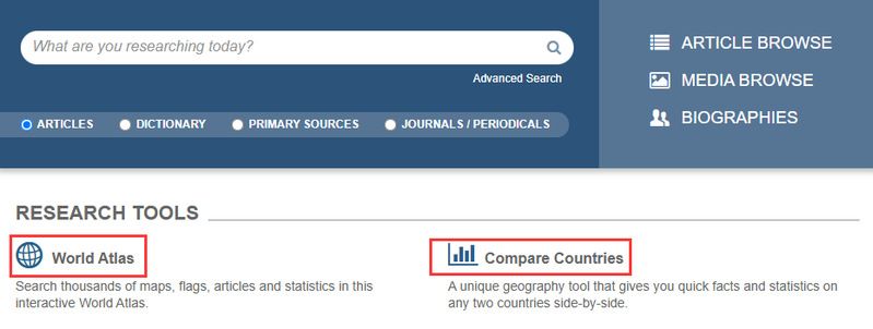 主页提供有研究工具(RESEARCH TOOLS),通过研究工具可进一步研究世界地图集及国家、地区比较。