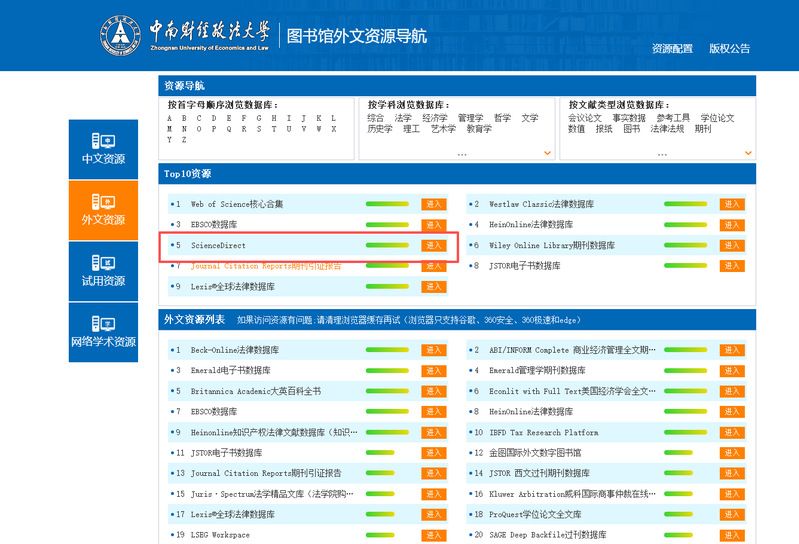 读者如果在校外使用该数据库,可通过“图书馆主页——数据库远程访问——ScienceDirect”通过统一身份认证即可访问。