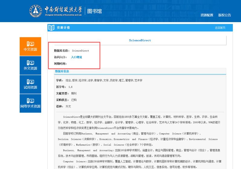 读者如果在校内使用该数据库,可通过“图书馆主页——外文库——ScienceDirect”,点击”入口地址”即可访问。