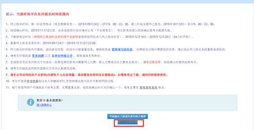 4、网报时间:2015年10月10日—31日 9:00—22:00。逾期不再补报,也不得再修改报名信息。