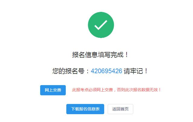 切记:报名号码一定要牢记!请根据报考点要求进行报名交费!