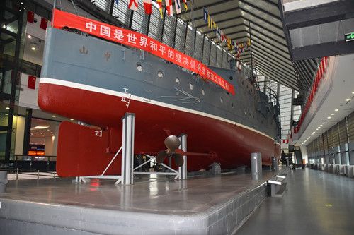 中山舰原名“永丰舰”,是1910年清政府向日本三菱长崎造船所订购的,1913年完工返国,被编入北洋政府海军。中山舰虽然吨位不大,但却以它特有的历史而成为名舰:1915-1916年,“永丰舰”响应孙中山先生的号召,参加了“护国讨袁运动”,首创义举,随后它又经历过“护法运动”、“东征平叛”、“孙中山蒙难”、“中山舰事件”等重大历史事件。1938年秋,京、沪沦陷后,武汉成了日军进攻的主要目标之一,中山舰奉命参加武汉保卫战,担负从嘉鱼、新堤至武昌县金口镇江面的警戒及运输任务。当时,中山舰主、副炮已拆下装在岸边几个要塞上,1938年10月24日下午15时许,当中山舰巡航在湖北金口江面时,突遇六架敌机轮番攻击。舰长萨师俊等25人在作战中牺牲,另有20多人负伤。中山舰舰尾等处要害部位中弹,经抢修无效,沉没在波涛之中。直到1997年1月28日,中山舰被打捞出水,1997年2月19日,中山舰被运至湖北造船厂修复,恢复了1925年前后的整体面貌。