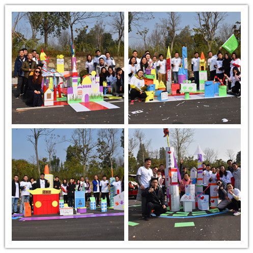 16号上午,进行最后的压轴的项目。项目很有开放性的,教练提供4个主题,分别是“创意”,“理想”,“未来”,“友谊”,然后每个团队用教练提供的材料,围绕各自的主题按要求搭建各自的城市。每位团队成员大胆想象,脑洞大开,各显神通。想象力丰富、设计能力强的队员提供方案,动手能力强的队员落实这些方案。通过各位团队成员的共同努力,每个团队在规定时间内完成了任务,建造起自己漂亮的主题城市。