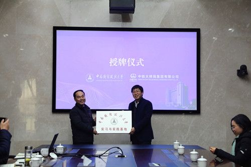 12月16日下午,工商管理学院副院长兼MBA教育中心副主任文豪教授带领2017级部分MBA学员参观访问了中铁大桥局。中铁大桥局财务共享中心刘小勇主任、孙恒建主任、陈华部长等领导接待了企业参访一行,并与我院签署了“实习与实践基地”协议、共同出席了挂牌仪式。
