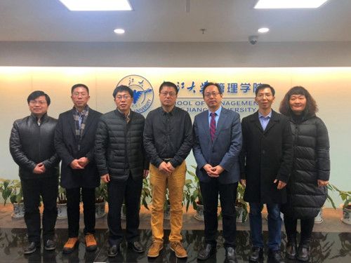 2019年1月7日,工商管理学院钱学锋院长一行五人,到浙江大学西溪校区拜访浙江大学全球创业研究中心主任、浙江大学文科资深教授王重鸣老师。