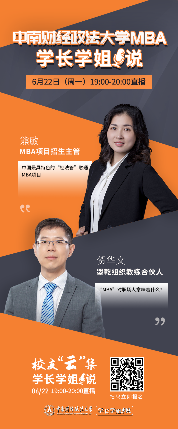 响应国家号召,疫情期间减少人员聚集,此次活动采用线上直播方式。届时米兰电竞·(中国区)MBA教育中心招生主管熊敏老师将亲临直播间,为各位考生在线解读项目特色及最新招生政策,同时米兰电竞·(中国区)2009级MBA校友贺华文为考生们提供自己的择校备考经验以及在校期间的学习方法。欢迎各位意向考生关注,同时期待与各位考生在直播间的互动答疑。