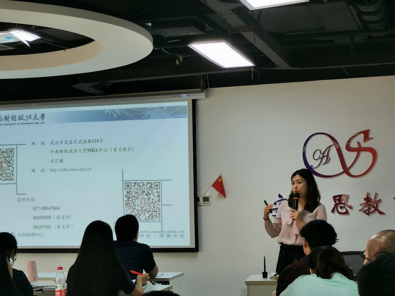 再次,18日最后一场宣讲会在下午16:30开始,我校MBA教育特色课程设计和精彩校园生活吸引了考生的关注,很多考生表达了想报考我校MBA和EMBA的想法,并就备考相关事宜积极提问,熊老师均进行了答疑。会后,很多备考考生关注了我校MBA教育中心公众号。