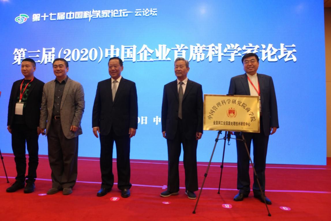 为推动我国赤泥资源综合利用,实现变废为宝,变害为利,北京金亚润环保科技有限公司联合中管院商学院发起成立“中国管理科学研究院商学院工业固废处理技术研究中心”,并在第十七届中国科学家论坛期间举行了中心揭牌仪式。全国政协原副主席刘晓峰,中国工程院院士杜祥琬,中国科学家论坛大会主席、 中管院商学院院长陈贵与董事长常文光教授共同参加了揭牌仪式。
