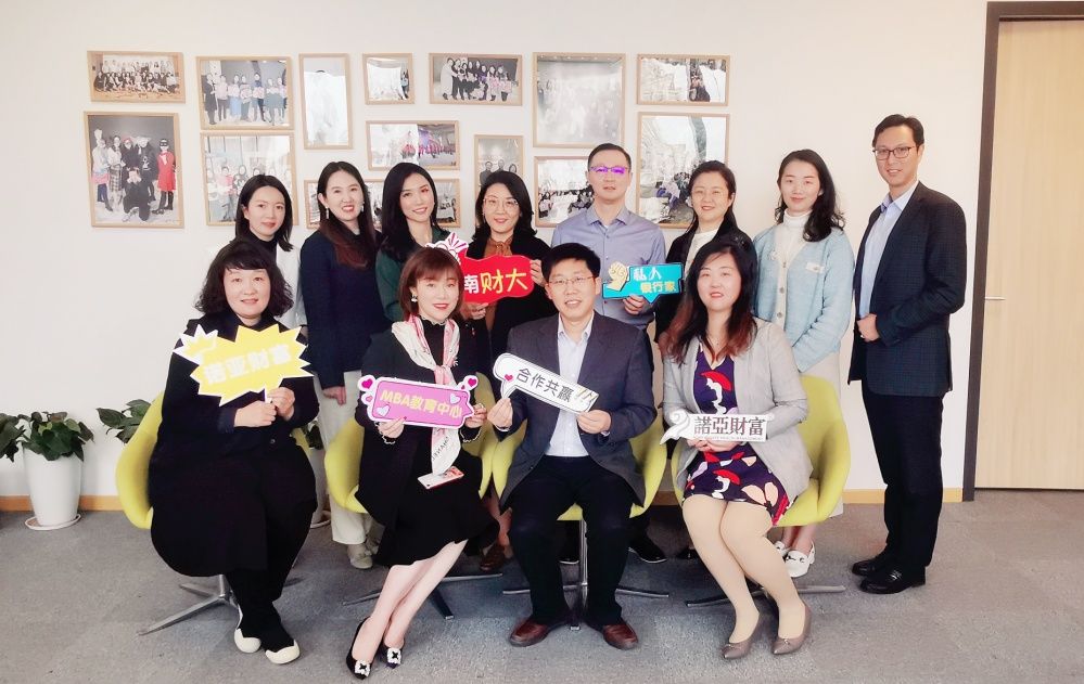 2021年4月28日下午,工商管理学院副院长兼MBA教育中心副主任文豪教授、MBA教育中心学术主任樊帅老师、王艳明老师一行前往MBA校友企业诺亚财富武汉分公司走访调研,并与诺亚财富武汉片区总经理,MBA2013级校友陈思关于校企合作等相关事宜进行了广泛深入的交流。出席交流会的有MBA2013级校友肖帆(诺亚财富武汉分公司 精英理财师)、MBA2015级校友姚诗(诺亚财富中西大区培训负责人)以及公司相关领导。