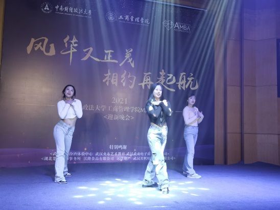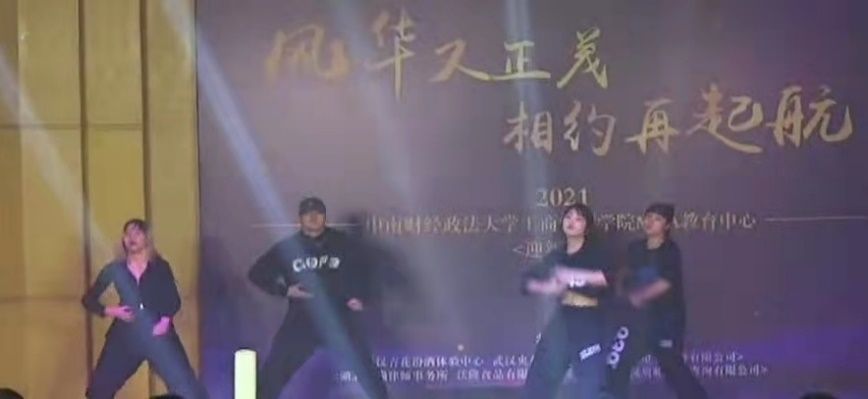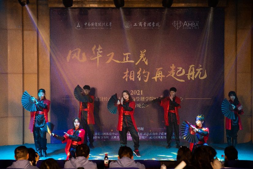 混合着时代的气息,绚烂的舞姿,开场舞是由2021级MBA周末1班的同学们带来的爵士舞《Lalisa》,现场线上的观众一同跟随她们的脚步,领略爵士舞的魅力。