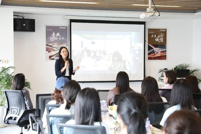 师生一行参观了诺亚财富的办公区域,了解诺亚财富的发展历程和经营理念。座谈会上,诺亚财富集团首席运营官高扬向在座师生分享了女性领导力在诺亚财富的体现,以数据展示了诺亚员工中有62%的女性员工,有37%女性高管,有33%女性董事以及57%女性社团团长,诺亚一直致力于推动女性员工的发展,展现女性榜样力量,同时她向在座师生分享了疫情期间诺亚财富的作为,指出企业在疫情中承担了一定的社会责任,要在危机中寻找机遇,把握机遇,留住人才。