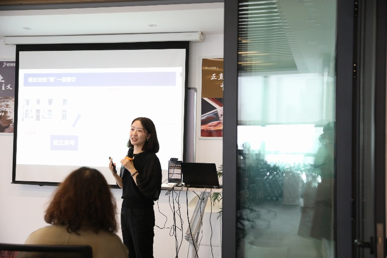诺亚财富优秀员工代表李婧向就学习工作生活中的经验与大家展开分享,她以自身一边工作一边考CFA的经验为例,鼓励在座营员要设定目标,并为之勤奋努力,要在纷乱复杂的当下世界中保持独立思考的习惯,要在实战中不断学习,与各行各业的人沟通交流,不断丰富自己的阅历,开阔自身的视野,同时她以国外留学的经验鼓励大家不要被性别的定义所限制,要做中性的人。