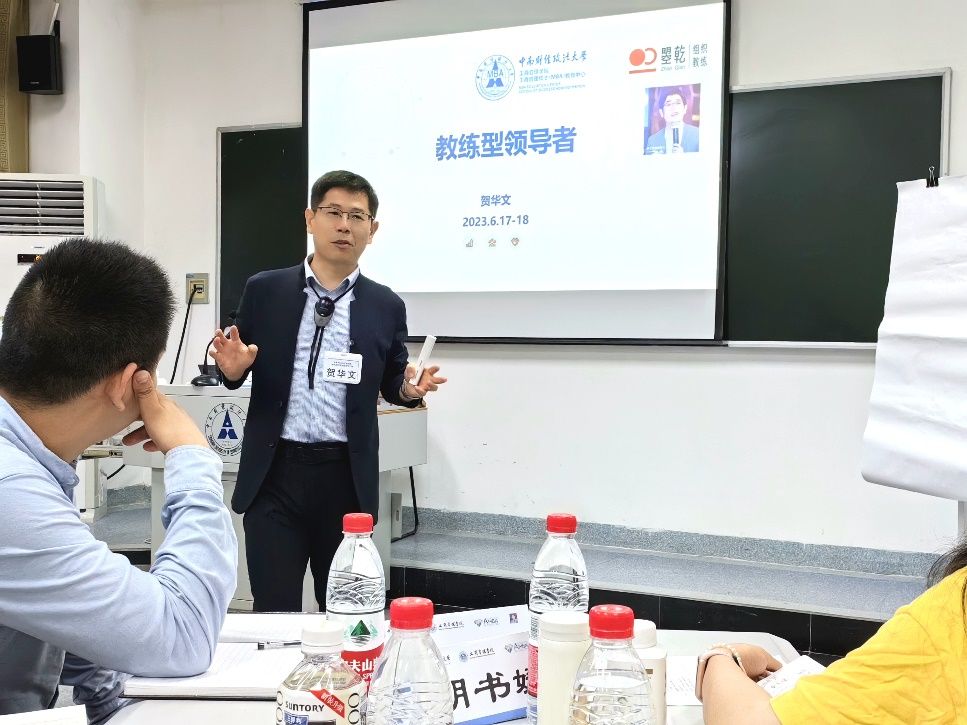 训练营活动的主讲老师是MBA2009级校友贺华文。贺华文老师有着丰富的企业管理经验,擅长进行管理者的管理效能和领导力提升,是ICF国际认证PCC教练、CCF中国十大金牌教练,同时也是MBA学院的合作老师,对论文指导有独到意见。贺华文老师在中南大MBA公众号开设专栏,连载了数期《华文讲透领导力》的推文,深受校友好评。