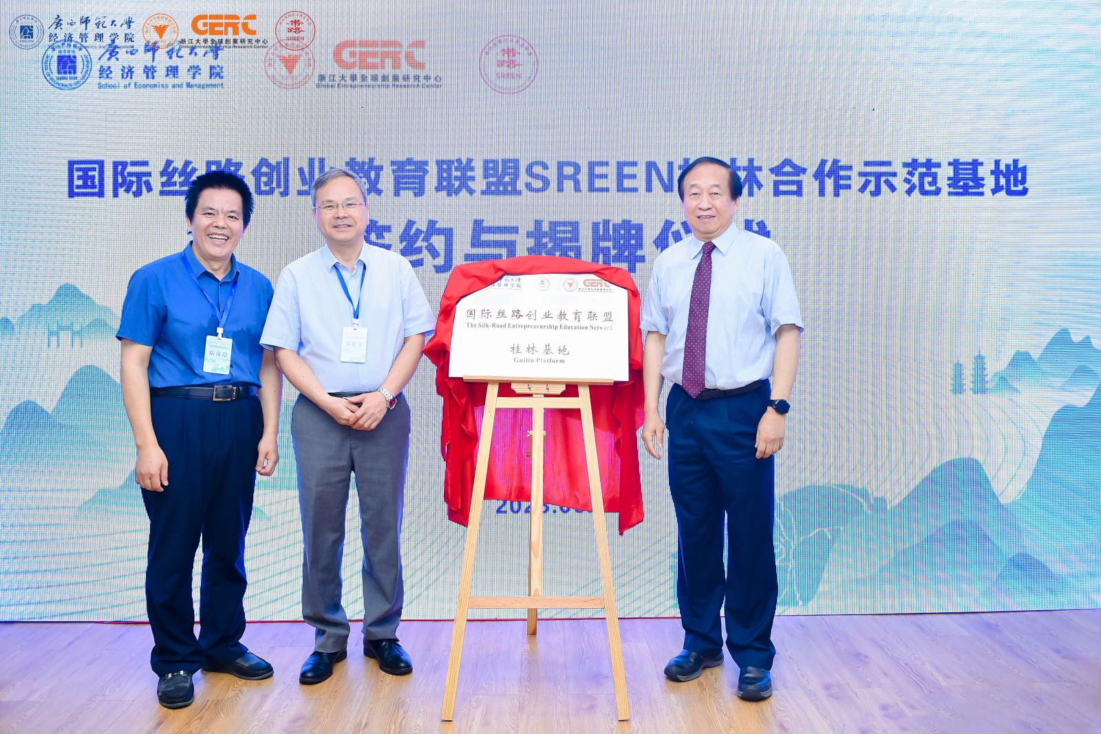 广西师范大学党委常委、副校长苏桂发教授、广西师范大学经济管理学院院长陆奇岸教授与王重鸣教授一道出席了国际丝路创业教育联盟SREEN桂林合作示范基地签约与揭牌仪式。