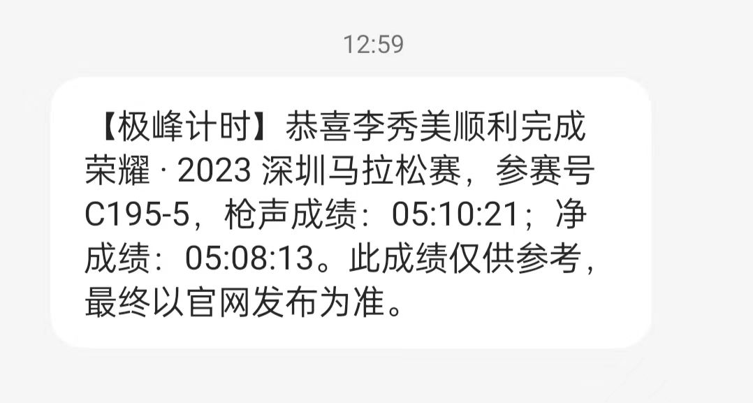 顺利到达终点时,我内心是激动不已的。这是对自己的一次挑战,我成功了。5:08完赛,这也是我的PB。