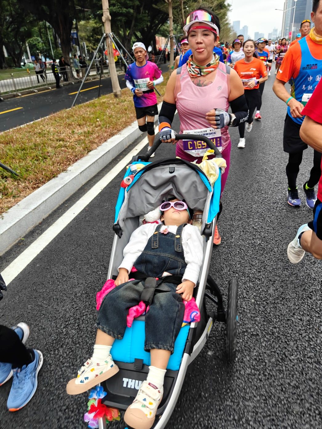 马拉松的赛道上精彩纷呈,有妈妈推着婴儿车带着孩子跑的,有大哥推着铁环跑的,有穿着公主裙跑的……每个人的马拉松,都是在圆自己的梦。
