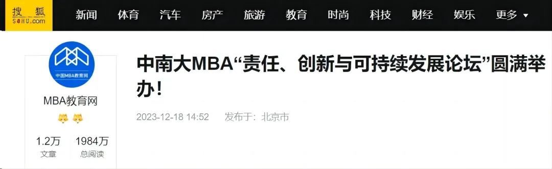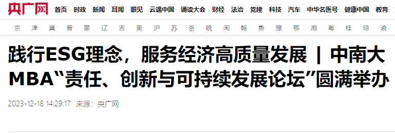2023年12月16日,我校工商管理学院MBA教育中心举办“责任、创新与可持续发展论坛”,并发布中国大陆第一家MBA教育报告,报告发布当天,受到湖北日报、财经头条、长江日报、央广网等多家媒体的同步关注与报道。
