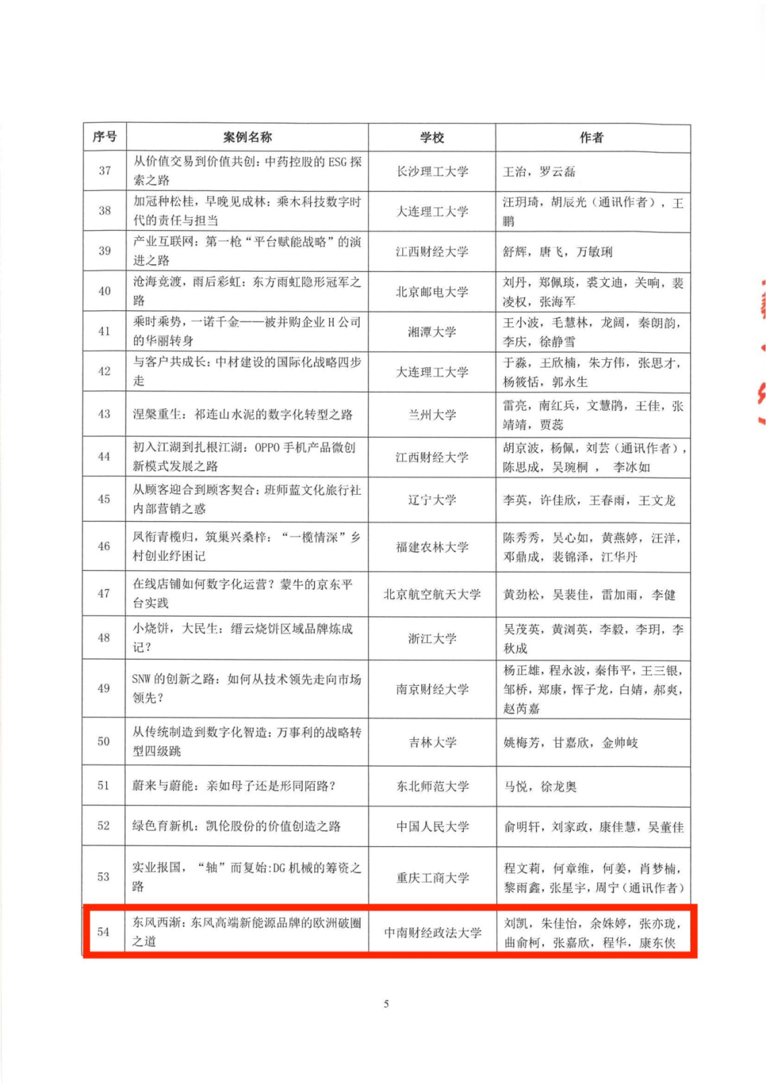 由全国工商管理专业学位研究生教育指导委员会指导,中国管理案例共享中心主办的第十四届“全国百篇优秀管理案例”评选结果公布。我院刘凯副教授领衔开发的案例《东风西渐:东风高端新能源品牌的欧洲破圈之道》和《传承还是新创:东风打造高端新能源品牌的战略抉择》从众多投稿中脱颖而出,分别入选第十四届“全国百篇优秀管理案例”一般项目和微案例。