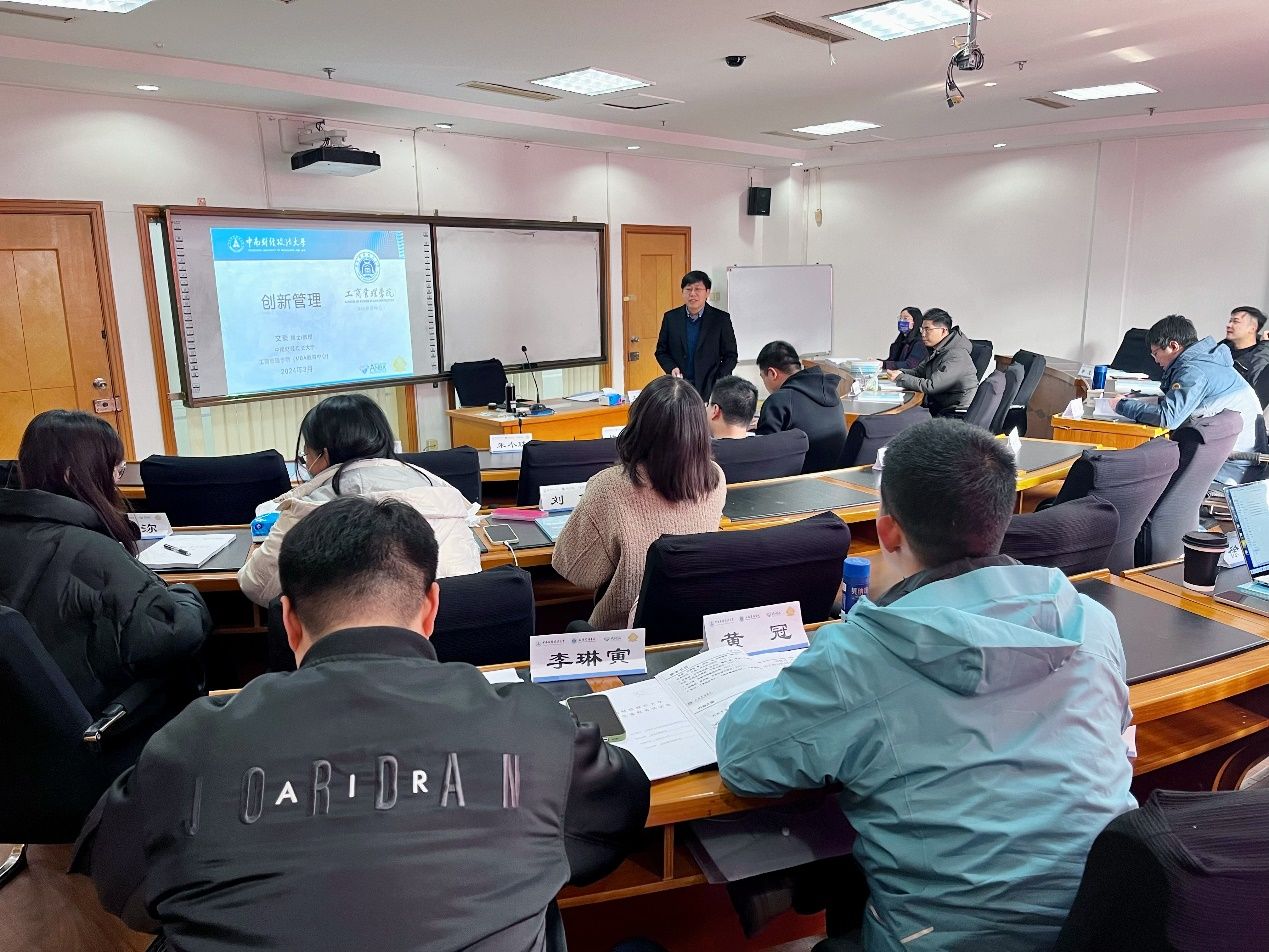 阳春三月,文豪教授在文汇楼301为2022级EMBA学子们讲授了《创新管理》课程。在经济全球化浪潮和科技日新月异的背景下,企业创新管理成为引领企业腾飞的关键引擎,文教授从“心、脑、体”三个维度出发,全面剖析了企业创新管理的核心要素。他以深入浅出的方式,点亮了学子们创新思维的火花,助力大家在企业创新管理的道路上龙骧虎步、奋勇当先。