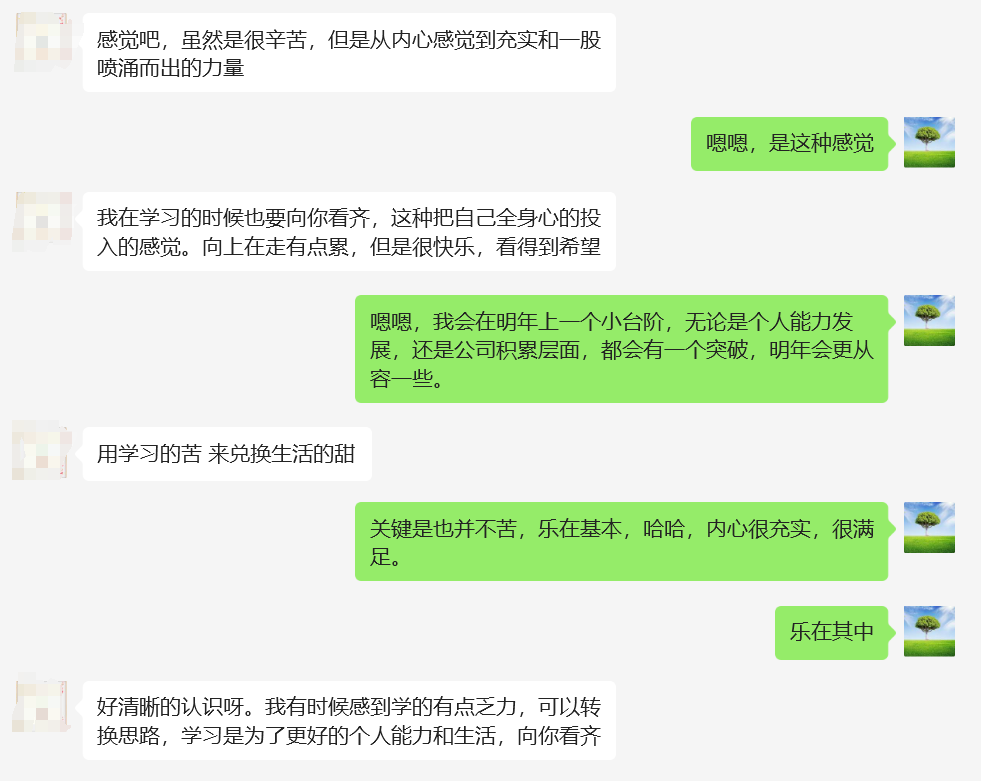 小丫头的反馈让我很振奋。如果我的存在能给师妹带来一些正能量,这就是我的价值