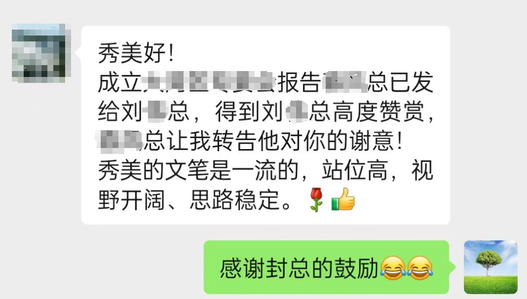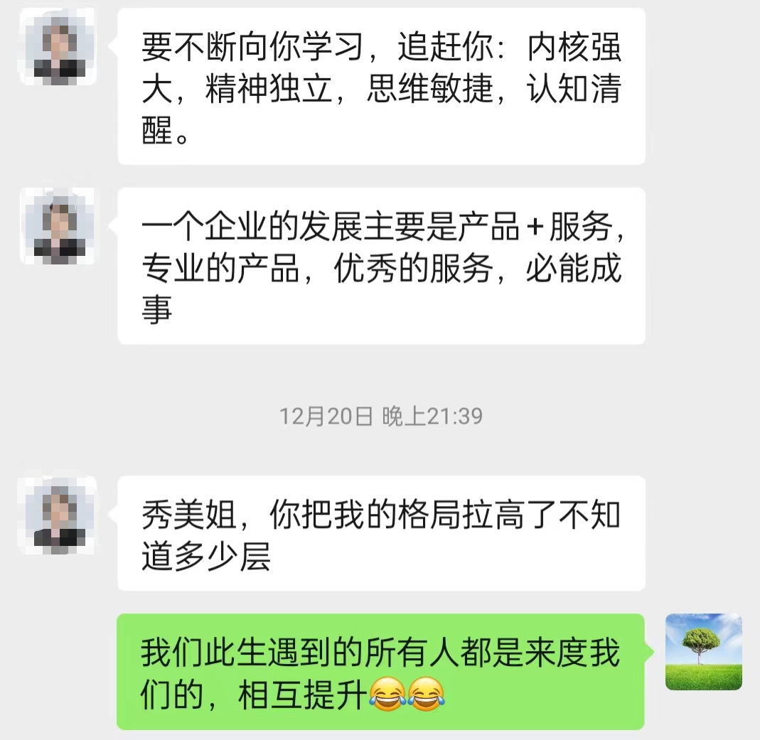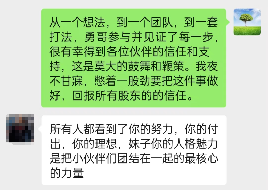 还有我们的董事长,无论我什么时候汇报工作,得到的反馈都是肯定、欣赏和鼓励。当我需要支持时,他更是全力以赴,竭尽所能。遇到这样的贵人和领导,除了更加努力,我还能怎么样?