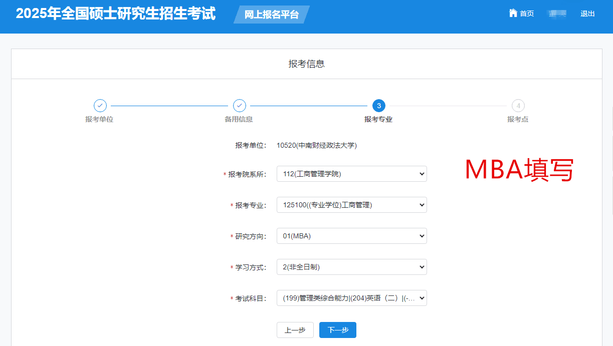 1.因教育部规定,MBA/EMBA考生在户籍或工作所在地进行考试,各省招办的政策也不一样,所以各省考生的考点选择是不一样的(确认地点也不相同)。其它省市的考生,请选择自己工作或户口所在地省市的指定考点,详细信息请考生点击“网报公告”进入http://yz.chsi.com.cn/sswbgg/,查询本省的网报公告,根据工作或户口所在地省级教育招生考试管理机构指定的报考点办理网上报名和网上确认手续。完成报名后,报名号码一定要牢记!请根据报考点要求进行网上交费!