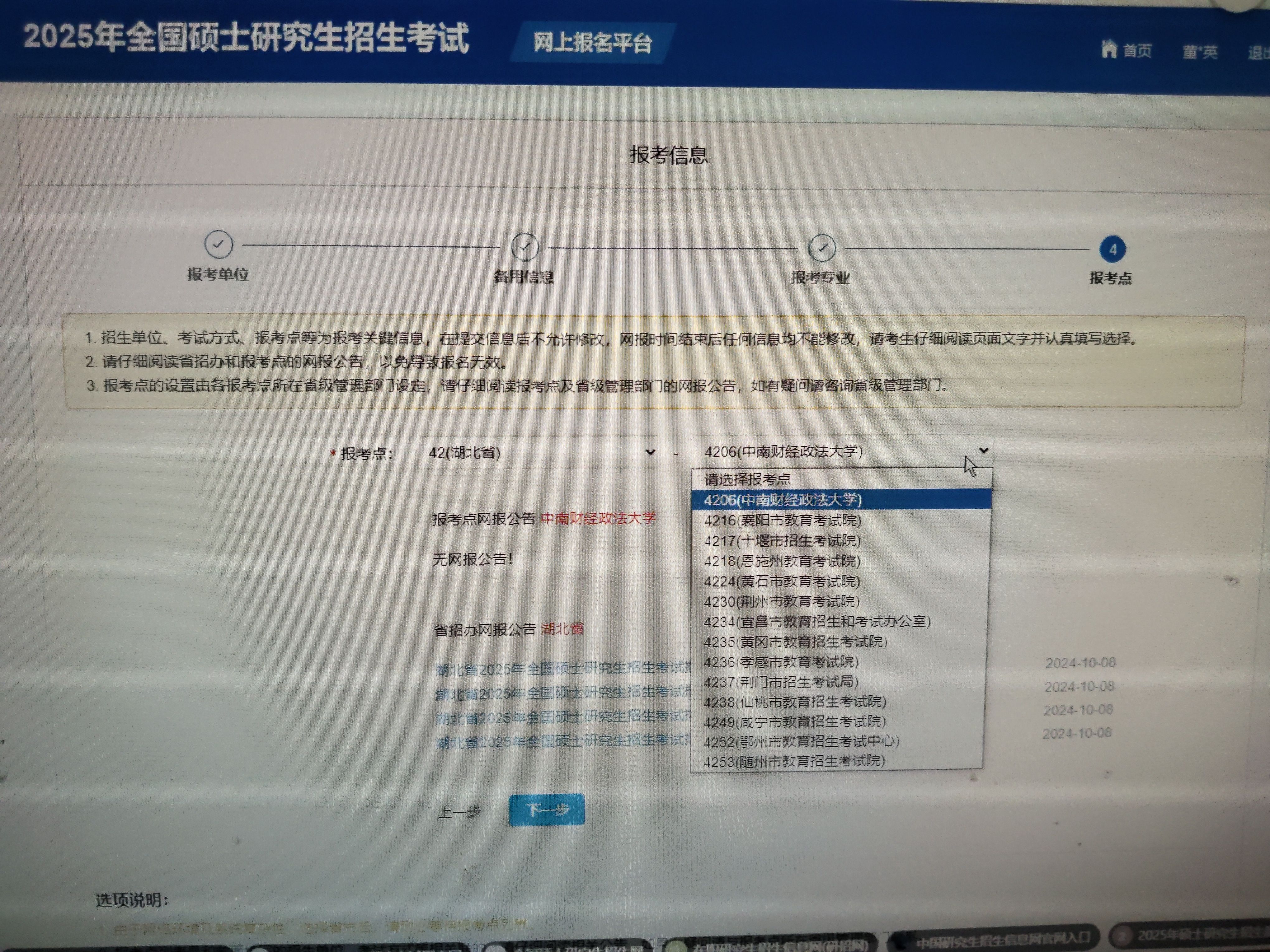 (3)户口和工作均不在武汉的考生一律不得选择米兰电竞·(中国区)报考点,湖北省其它城市考生的报考点选择以《湖北省2025年全国硕士研究生招生考试报名须知》(http://www.hbea.edu.cn/html/2024-10/14503.shtml)和《2025年湖北省研考报考点设置及接收考生范围一览表》(附件)相关要求为准。不符合上述米兰电竞·(中国区)报考点生源范围的考生,请按照《湖北省2025年全国硕士研究生招生考试报名须知》相关规定选择报考点报名,并按要求完成网上确认。不按规定选择报考点的,网上确认一律不予通过。