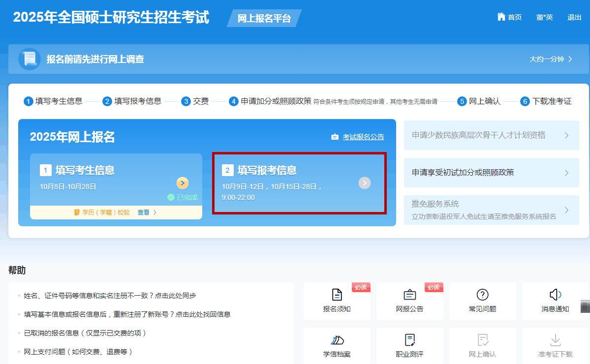 请考生提前准备网报相关信息,以免在网报时由于单个页面停滞时间过长而导致报名失效。