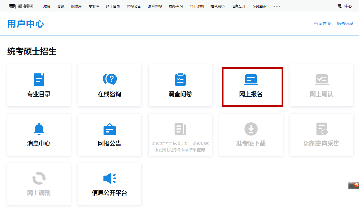 1.http://yz.chsi.com.cn/ 点击首页“统考网报”