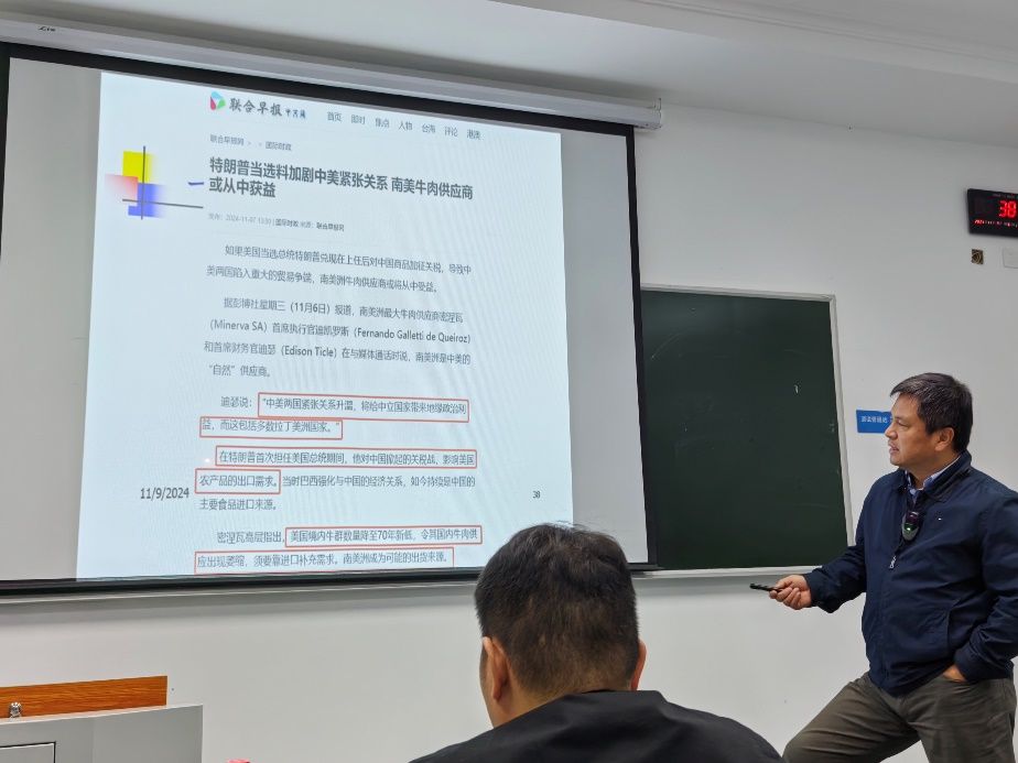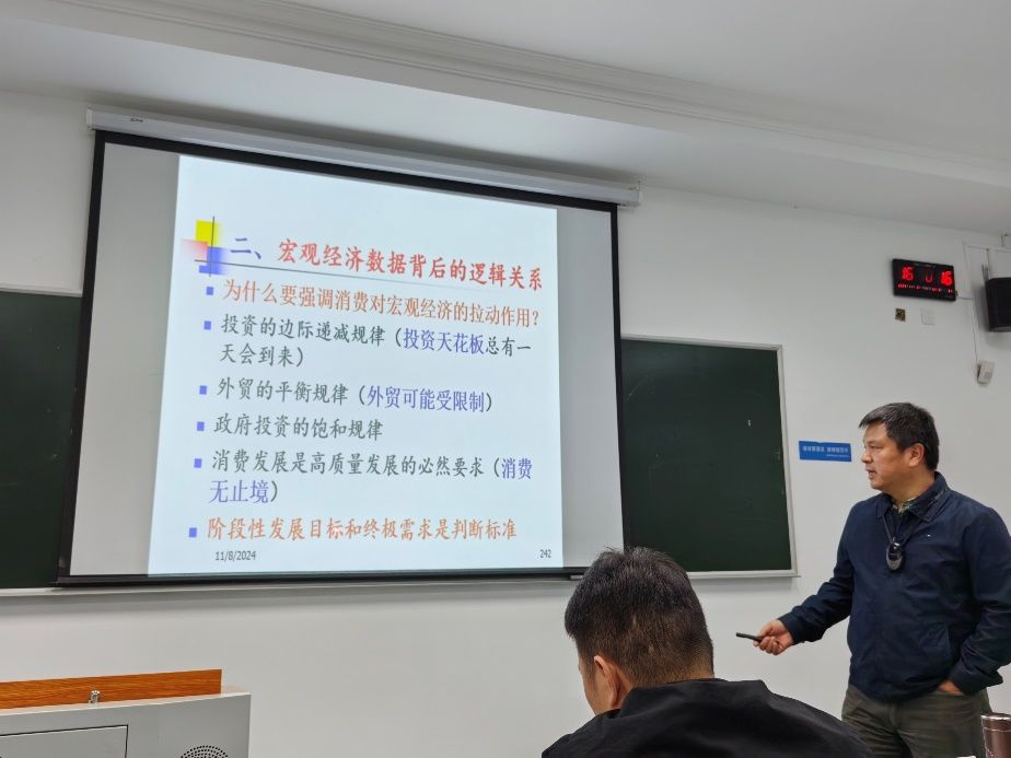 除此之外,本次课程还系统讲授了不同国家和地区的经济发展模式、通货膨胀和通货紧缩对经济的影响、当前宏观经济形势分析、经济全球化、人工智能、新质生产力等重要课题。透过对美国、阿根廷、巴西、日本、土耳其等国在全球化大环境中不同时期不同经济政策的剖析,让同学们深刻理解了各国政策制定者所面临的权衡与取舍,以及不同政策工具在特定经济环境下的适用性,同时也让同学们更好地了解了全球经济的发展趋势和各国经济之间的联系。