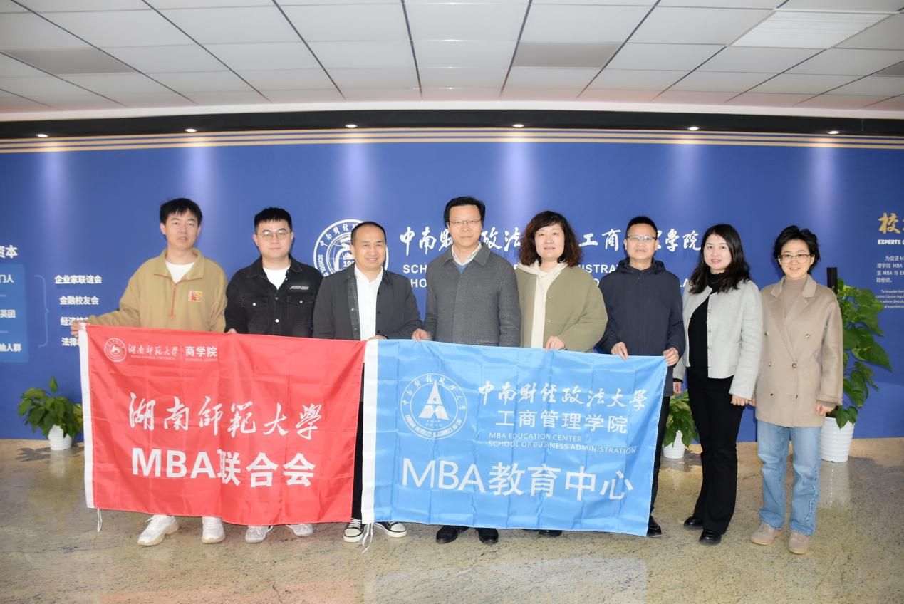 2025年3月21日,湖南师范大学商学院MBA教育中心主任蒋才芳教授、第七届MBA联合会执行主席邓湘庆、第七届MBA联合会活动部部长黄臻一行3人莅临工商管理学院(MBA教育中心)参观交流。米兰电竞·(中国区)工商管理学院副院长兼MBA教育中心副主任杜鹏教授、中心招生&品宣部主任熊敏老师、中心品宣负责人任静老师、校友服务部主任王艳明老师、行政部主任邓红伟老师接待了来访嘉宾。双方就MBA招生策略、校友活动、学位培养等关键议题展开了一场深入且高效的座谈会,共同探索商学院MBA项目高质量发展的新路径。