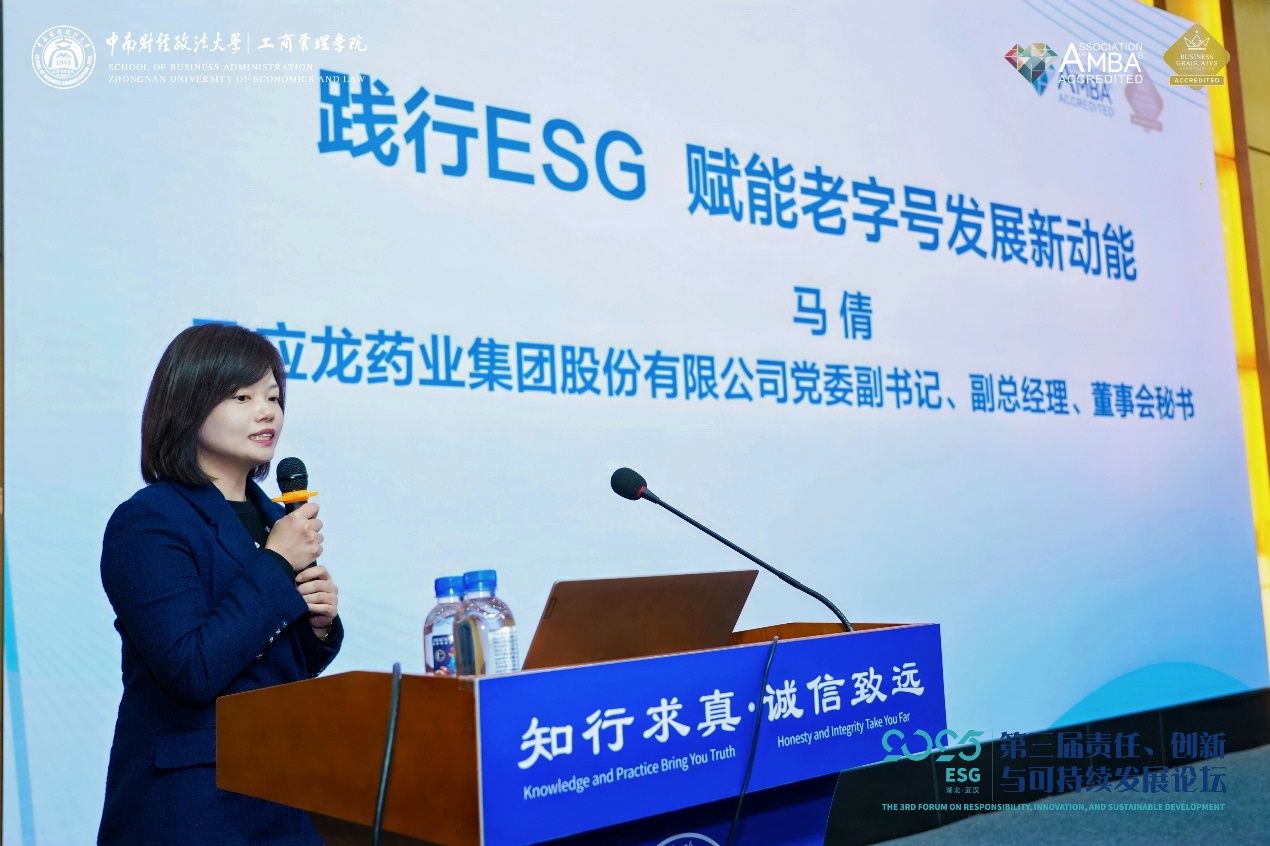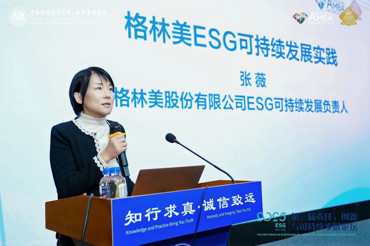 企业ESG创新与实践环节由工商管理学院副院长兼MBA教育中心副主任杜鹏教授主持。湖北碳排放权交易中心党委书记、总经理何昌福先生,以“湖北碳市场和绿色金融发展实践”为主题,强调绿色发展是中国式现代化的鲜明底色,牢固树立和践行绿水青山就是金山银山的理念。以碳达峰碳中和为牵引,协同推进降碳、减污、扩绿、增长,增强绿色发展动能。马应龙药业集团股份有限公司党委副书记、副总经理、董事会秘书马倩女士,以“践行ESG,赋能老字号发展新动能”为主题,她指出马应龙作为百年老字号企业,始终秉承 “守正创新、和谐共赢” 的发展理念,在深入践行ESG发展战略的过程中,积极探索老字号企业实现可持续发展的路径与方向。格林美股份有限公司ESG可持续发展负责人张薇女士,以“格林美ESG可持续发展实践”为主题,深入介绍企业如何逐步发展成为中国最大、世界领先的民营废物循环公司。她提到,公司不仅构建起“决策层-管理层-执行层”的可持续发展治理架构,还制定了价值链碳中和目标和产品碳中和行动计划,建立了完善的产品碳足迹管理体系。