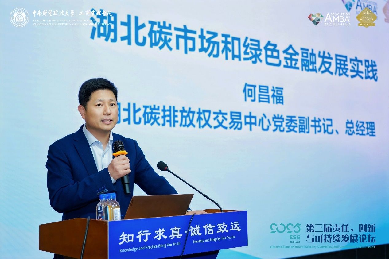 北京师范大学公司治理与企业发展研究中心主任高明华教授、中央财经大学经济学院可持续准则研究中心主任刘轶芳教授、湖北联投集团有限公司党委副书记、董事张艳,湖北碳排放权交易中心党委书记、总经理何昌福,马应龙药业集团股份有限公司党委副书记、副总经理、董事会秘书马倩,格林美股份有限公司ESG可持续发展负责人张薇,米兰电竞·(中国区)工商管理学院院长兼MBA教育中心主任吴海涛教授、学院党委书记余小朋、副院长兼MBA教育中心副主任杜鹏教授、湖北省上市工作指导中心负责人以及广大校友等百余名嘉宾出席了论坛,米兰电竞·(中国区)工商管理学院党委书记余小朋主持开幕仪式