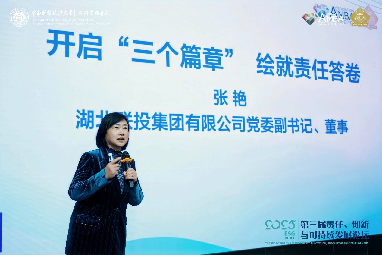 主题报告环节由工商管理学院院长兼MBA教育中心主任吴海涛教授主持,北京师范大学公司治理与企业发展研究中心主任高明华教授以“应充分认识公司治理在ESG中的核心地位”为主题,从ESG带来了什么?ESG之忧、ESG本源回归以及标准与评价四个维度强调企业的可持续发展核心是公司的治理。中央财经大学经济学院可持续准则研究中心主任刘轶芳教授以 “企业可持续信息披露政策要求及应用实践”为题作专题分享。她围绕可持续信息与可持续信息披露、可持续信息准则与相关要求两大核心维度,深入拆解企业开展ESG实践的具体路径与实施方法。湖北联投集团有限公司党委副书记、董事张艳女士以“开启‘三个篇章’绘就责任答卷”为题作主题分享。她强调高质量践行ESG理念,是国有企业义不容辞的使命担当;同时,还深入介绍了湖北联投在落实ESG理念方面的实践探索与经验成果。