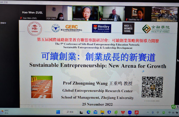 2022年11月25日下午,由澳门城市大学承办的“第五届国际丝路创业教育联盟专题研讨会:可续创业策略与领导力开发”在线隆重举行,来自中国大陆、中国澳门、英国、日本等国内外几十所大学,以及AMBA&BGA国际认证协会的专家参加了此次云论。