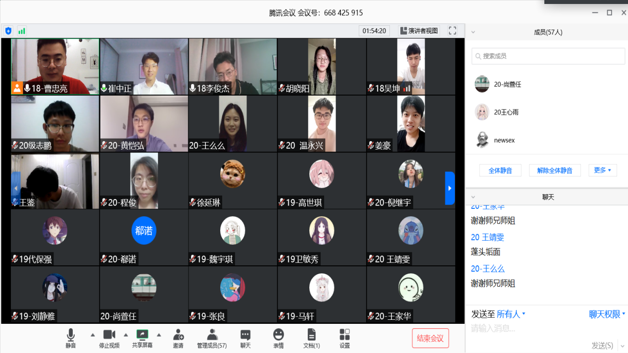 (通讯员 曹忠亮)2020年6月23日,工商管理学院举办了2020届毕业生座谈会,会上毕业生代表提议同专业跨年级的同学联动举办就业实习分享会,高年级学生向低年级学生分享就业信息与经验。为积极响应会上提议,7月19日晚上7:30,资产评估专业组织召开就业实习线上分享会。会议由2018级资产评估班长曹忠亮主持,此次会议共有18级毕业生和19级、20级资产评估在校生近60人参与。