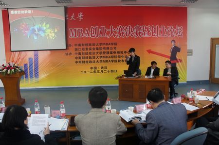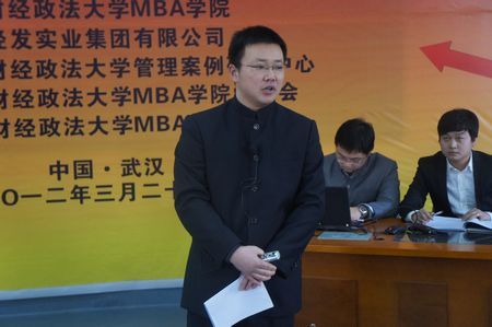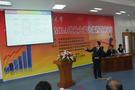 On March 24, the final match of ZUEL’s first “Jingfa Cup” Entrepreneurship Competition and the Entrepreneurship Forum were held in Room 201, Wenjin Building. The match was sponsored by Zhejiang Jingfa Group Co. Ltd., and co-organized by ZUEL MBA School’s Management Cases Research Centre, Students’ Union, and Alumni Association. After fierce competition, the project “Shining Time and Space” Hotline of Psychological Health Consultation presented by the “3S” Team (from 3S fulltime MBA programme) won the first prize. Dr. Xin Nie, Vice Dean of MBA School, was present and made an address. The guests and judges included Professor Hanhui Deng (Vice Dean of ZUEL Entrepreneurship School), Guobing Su (Vice President of Wuhan Maoren Garments Co., Ltd.), Jianjun Zuo ( General Manger of Wuhan Leixin Technology Development Co., Ltd.), Jiang Xu (partner of Shenzhen Extra Investment Co., Ltd.), Lianghua Guo (General Manager of Wuhan Chutianxing Technology Development Co., Ltd.), Yong Zhou (Vice General Manager of Hubei Provincial Cereals Oils & Foodstuffs I/E (Group) Corporation).