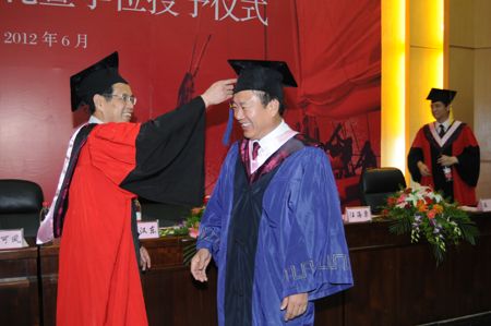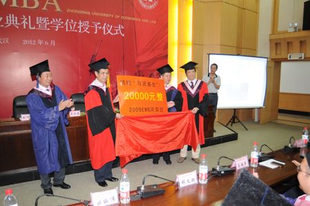 On June 30th, Graduation and EMBA Degree Conferrence Ceremony of 2012 was grandly held in Zhexiao Lecture Hall of ZUEL MBA School. Those who attended the ceremony included Handong Wu (President of ZUEL), Kefeng Liu (Vice President of ZUEL), Haisu Wang (Dean of ZUEL MBA School), Lijun Hu (Vice Dean of ZUEL MBA School), Xi Wen (Vice Director of ZUEL Alumni Affairs Office) and EMBA students to graduate.
