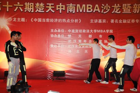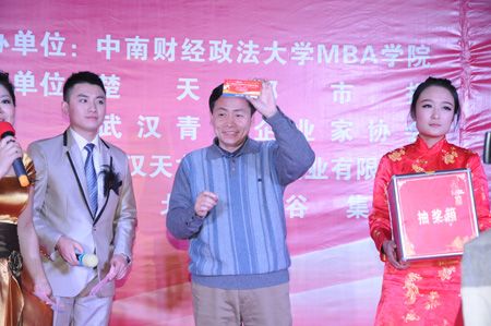On December 22nd, the 16th Chutian-Zhongnan MBA Salon and the New Year Party was held. It was organized by MBA School, ZUEL, co-organized by Chutian Metropolis Daily and Wuhan Young Entrepreneur Coucil, and sponsored by Wuhan Tianlong Yellow Crane Tower Wine Co. Ltd. and Hubei Tiangu Group. More than 200 alumni gathered together and chatted with each other. Baisan Xie (a famous expert on securities investment), Professor Haisu Wang (Dean of MBA School, ZUEL), Dr. Xin Nie (Vice Dean of MBA School, ZUEL) and representatives of entrepreneurs attended this activity. The opening ceremony was hosted by Professor Haisu Wang.