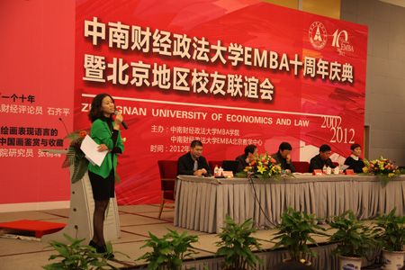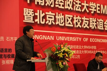 On December 22nd, 2012, the “10th anniversary of ZUEL EMBA and social gathering of Beijing Alumni” was held in Beijing Railway Hotel by MBA School, ZUEL. More than 130 EMBA alumni from Beijing attended the activity. Professor Jingming Zhou, Deputy Secretary of ZUEL’s Party Committee, stated ZUEL’s philosophy of schooling---to cultivate business leaders and political elites characterized by the combination of “finance, economics, management and law”. He also made a report about the achievements that our EMBA had achieved in last decade. Professor Lijun Hu, Vice Dean of MBA School, reviewed the ten main steps that EMBA had experienced in its development process during the past decade, and expressed his expectation of “creating a world-famous EMBA” in the following decade. Mingjiao Zhang, representative of the alumni and vice general manager of Xinxing Ductile Iron Pipes Co., Ltd., expressed gratitude for ZUEL. Mr. Dingfei Hu, the newly elected executive chairman of the Beijing Alumni, made a speech. The opening ceremony was hosted by Hongling Zhou, from Class 1 of 2010.
