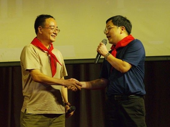 Five o’clock in the afternoon, the students went into the Hotel one after another. Once they entered the gate, a red scarf was wrapped around their necks by the students of Class Five. Everyone walked to the “classroom wall” and signed their names on the “blackboard” with smiles on their faces. And group photos were taken.