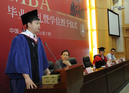 Professor Handong Wu expressed the heartiest congratulations to the graduating MBA students on behalf of all the ZUEL faculty and students. He also put forward new connotations of “Chinese Dream”: a dream of national rejuvenation, a dream of management innovation, a dream of personal happiness.