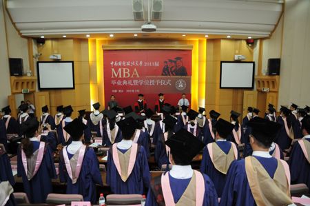 The Commencement was hosted by professor Lijun Hu, dean of MBA School. Professor Handong Wu, president of ZUEL, attended the Commencement and made a speech. Professor Qi Zhang delivered an address on behalf of teachers and Qi Huang delivered an address on behalf of the graduating MBA students. Some teachers of MBA School also attended the Commencement.