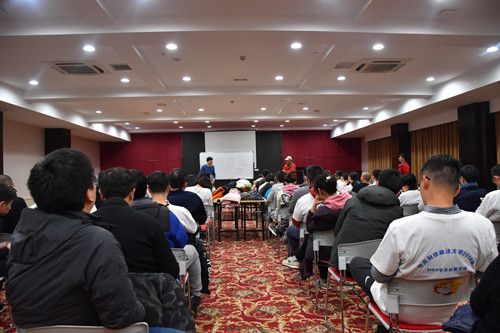They arrived at the training site in the morning of December 15. After their arrival, they were randomly divided into four teams through the activity called “Team Building”. In the afternoon, a series of activities were offered to build mutual trust and teamwork abilities. These activities require high cooperative and executive ability. A single error made by one member will make the whole team unable to finish the activity. Through numerous trials, frequent communication and summary, all teams finished their job within the time limit. In the evening, an activity called “message passing” was held. This activity required all the members of a team stand one after another, and that a number be passed from the member in the back to the one in the front. This activity was very helpful in improving students communication skills and mutual trust. After this activity, every team picked a representative to share their feelings, which made them gain a better understanding of this activity.