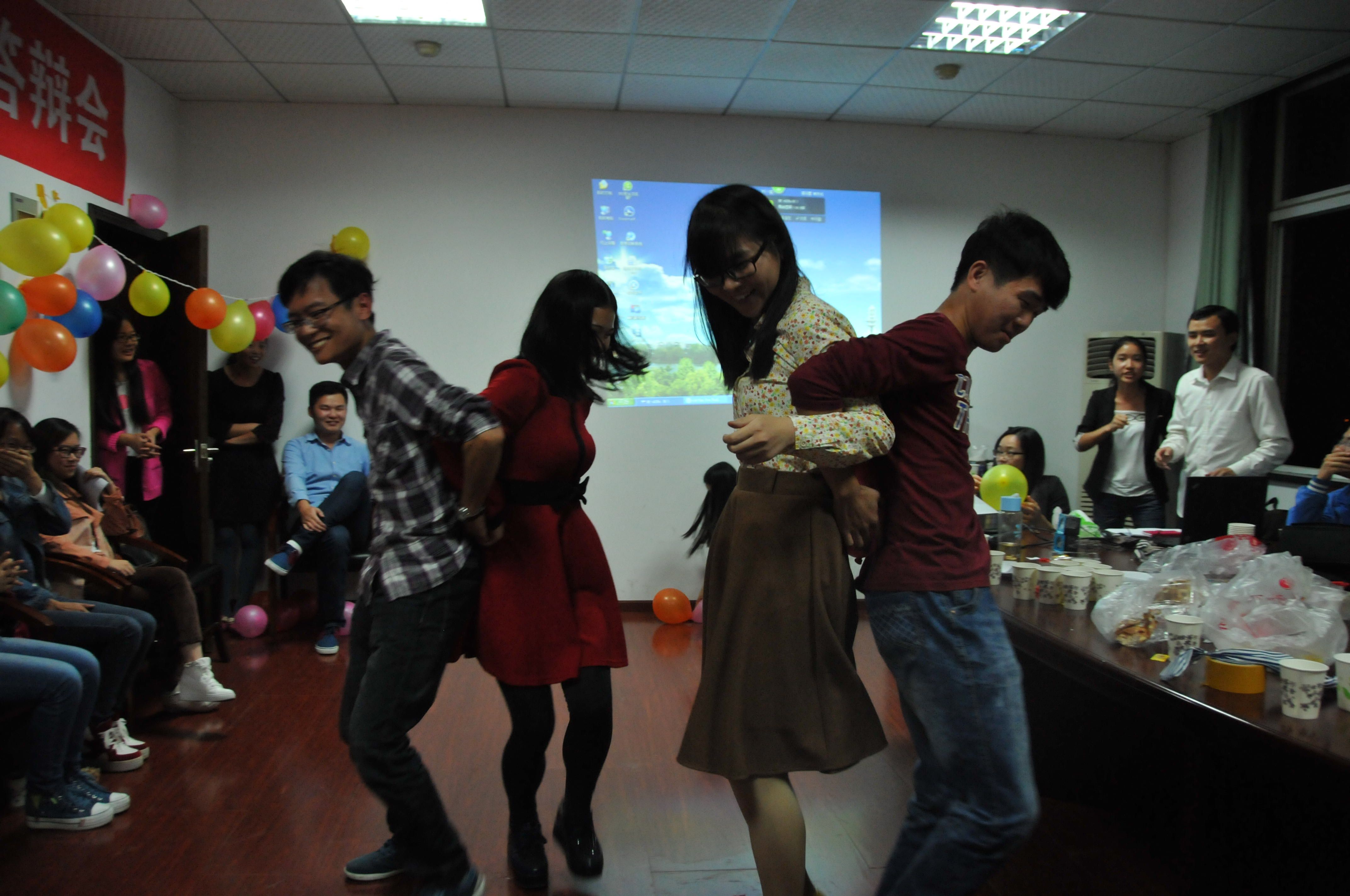本次联谊会旨在帮助研一的同学更好地从本科生活过渡到研究生生活,融入马院这个温暖的大家庭。联谊会由14级丁亮和成林梅同学主持,以何世凯同学的吉他弹唱《情非得已》拉开序幕。随后,联谊会进入了游戏环节,研一研二的同学纷纷踊跃参加,“五毛和一块抱团”、“你来吃我来喂”、“天生表演家”、“气球爆破”、“男女混搭大合唱”等一系列游戏精彩纷呈,通过游戏拉近了大家的距离,现场气氛轻松活跃,笑声此起彼伏。最后联谊会进入了特殊而温馨的庆生环节,研二的师姐播放了大家事先准备好的祝福视频,班委送出了生日蛋糕,大家不约而同地唱起了生日歌,为研一雷翠同学庆祝生日。