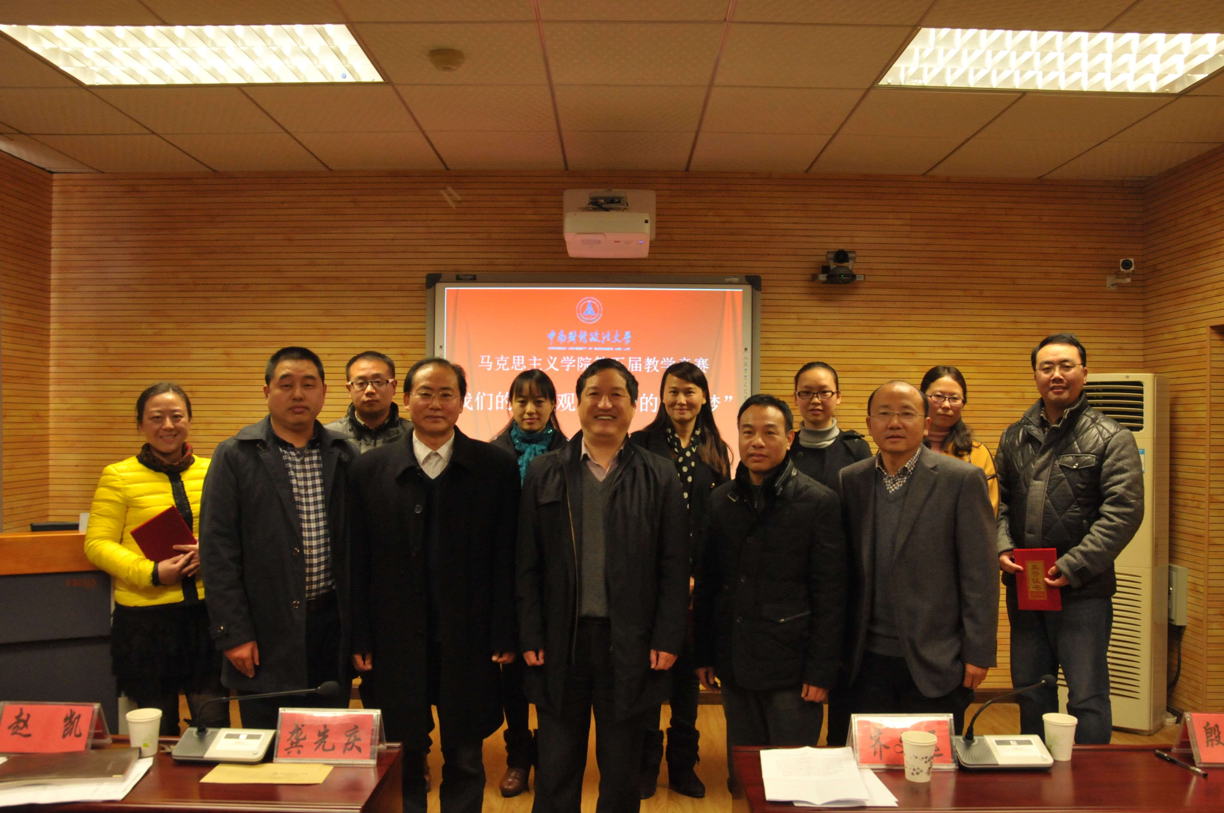 (通讯员 姬飞)2014年12月13日,马克思主义学院在文沛楼多媒体会议室举办了第五届教学竞赛——即以“我们的价值观,我们的中国梦”为主题的青年教师“微课”竞赛。校党委副书记齐文远教授,校党委宣传部部长殷修林,教务部副部长王良圣出席比赛现场并担任专家评委。党委宣传部傅小勇副部长也观摩了比赛。马克思主义学院院长龚先庆主持了竞赛,董文俊等八位青年教师分别进行了精彩的课堂演示。